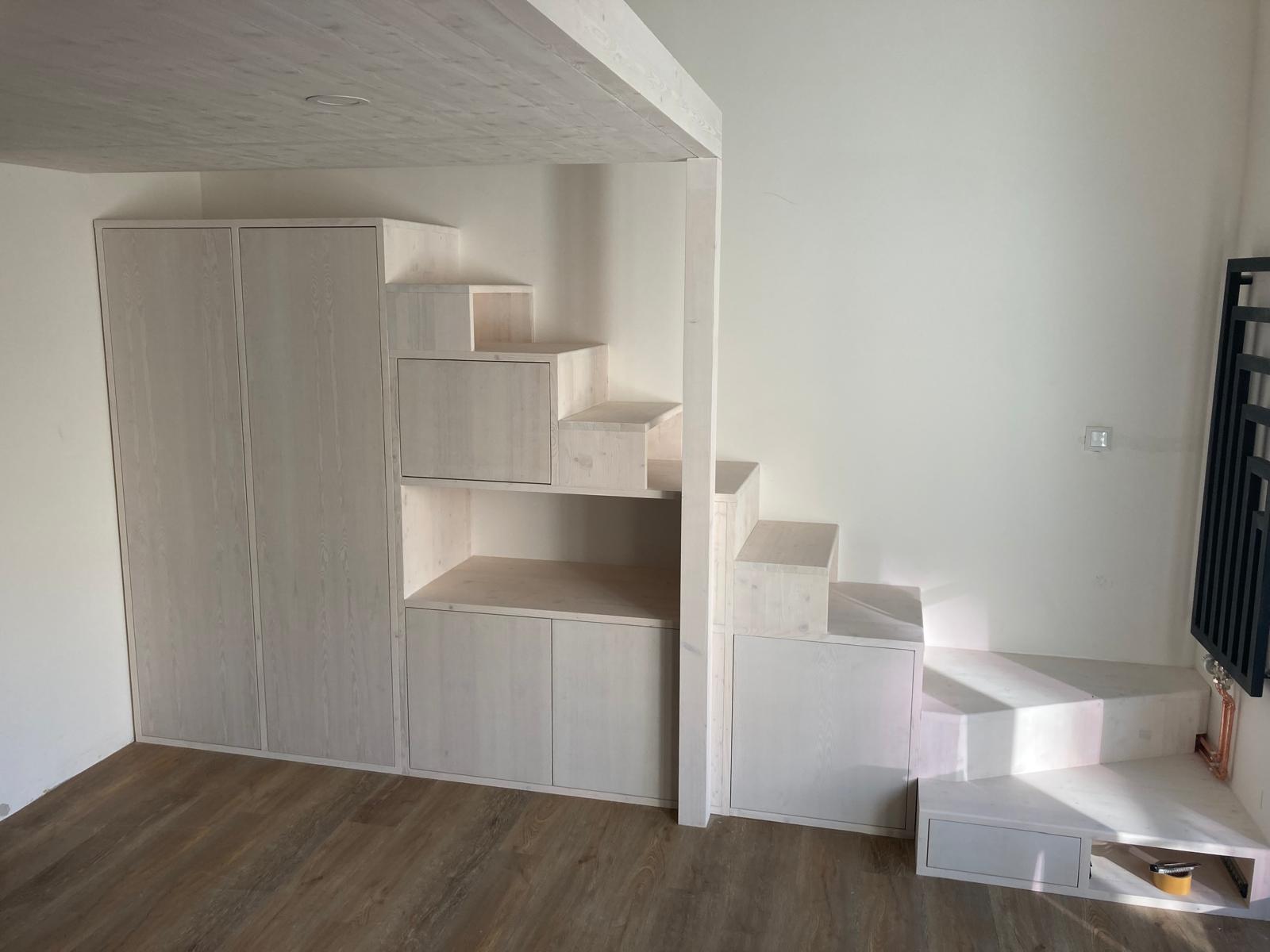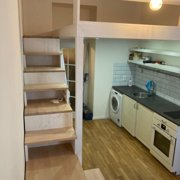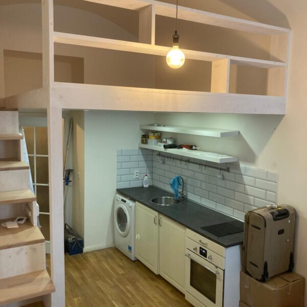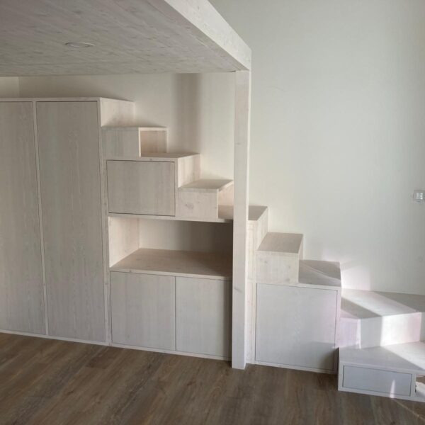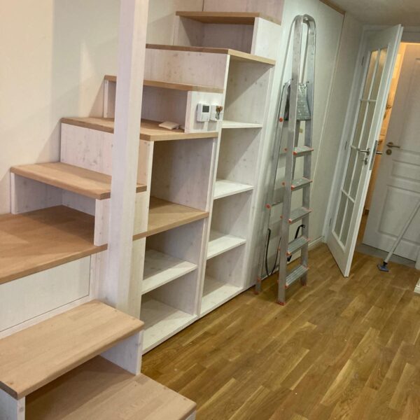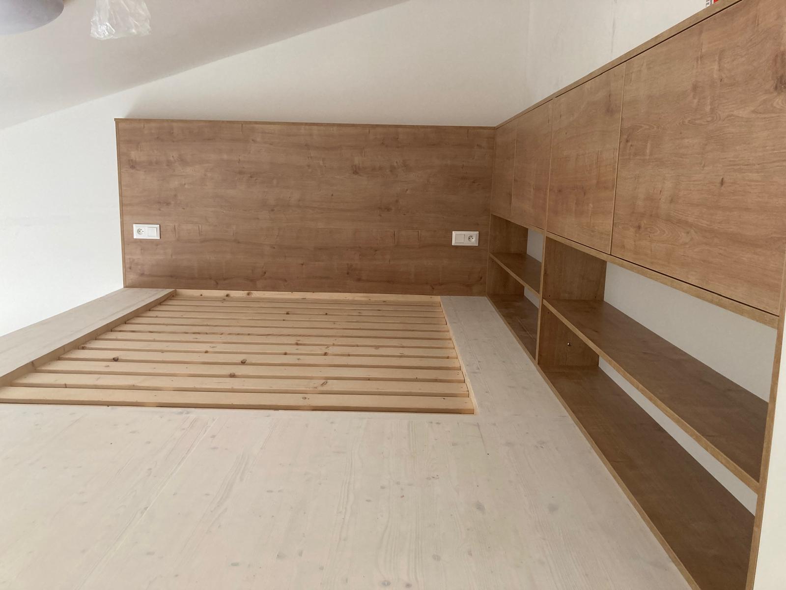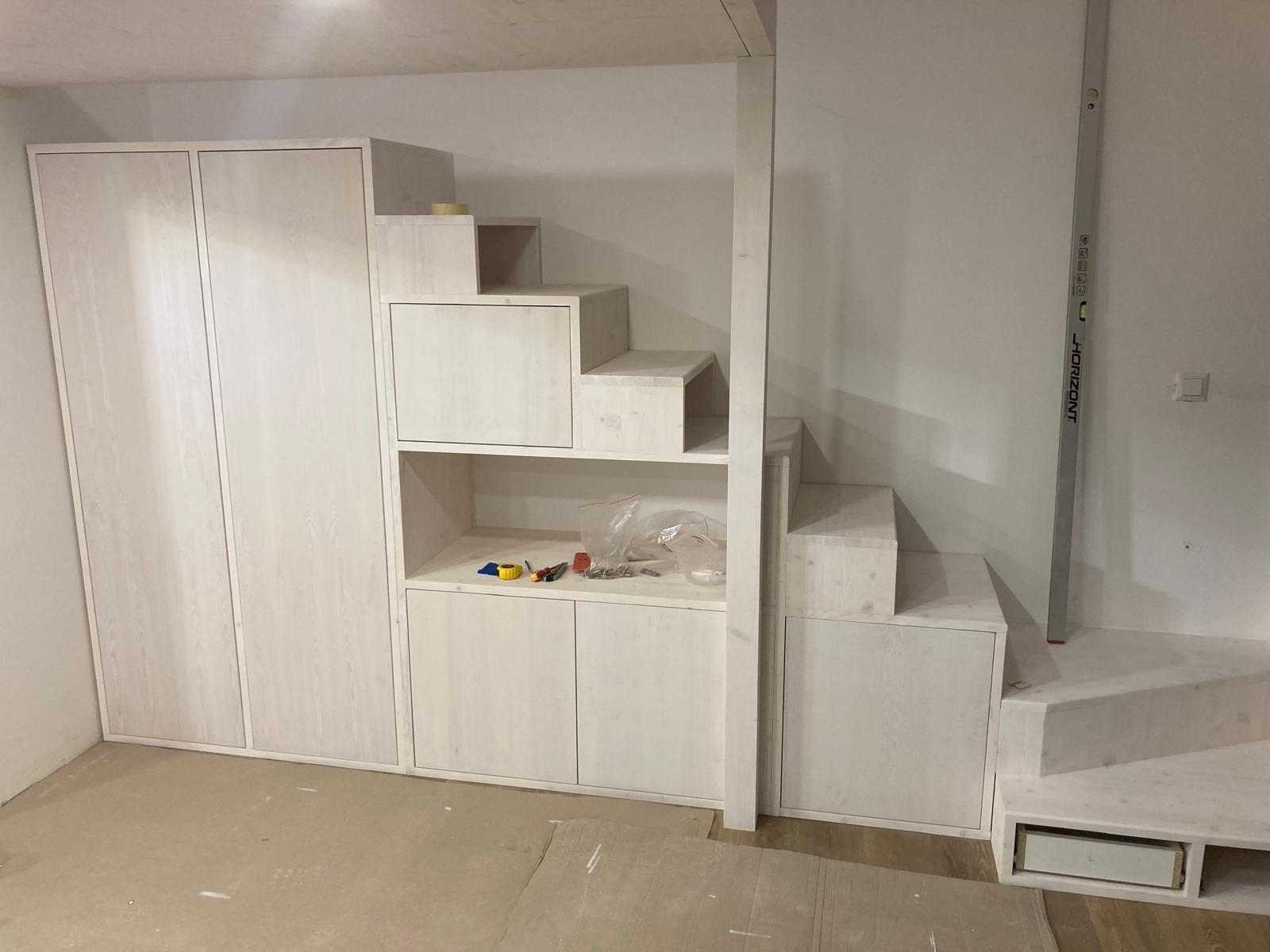 Kromě vestavěných pater a kuchyňských linek se zaměřujeme na výrobu dalších druhů nábytku, jako jsou vestavěné skříně, stoly nebo ostatní úložné prostory. Nabízíme také různé drobné opravy, obnovu povrchových úprav a další dřevařské práce (zkrácení dveří podélné i výškové, výroba prahů, usazení obložkových zárubní, atd.). Níže naleznete některé příklady již realizovaných projektů.