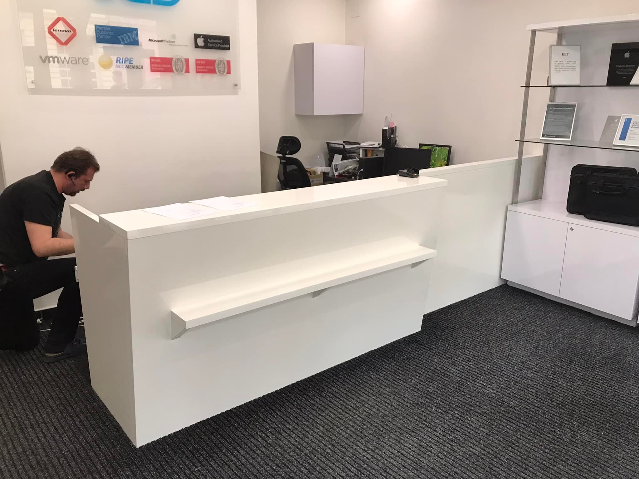 Pult disponuje praktickou poličkou pro zákazníka, která umožňuje pohodlné odložení dokumentů, tašek nebo jiných drobností během komunikace s obsluhou. Jeho jednoduchý a minimalistický design se hodí do různých typů obchodních prostor, recepcí či servisních center, kde přispívá k modernímu a reprezentativnímu dojmu.